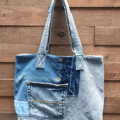 | メーカー名 | 5fa3b4e3 | ブランド名 | 藍染 古布リメイク ハンドメイド 刺し子 トートバッグ 襤褸 |