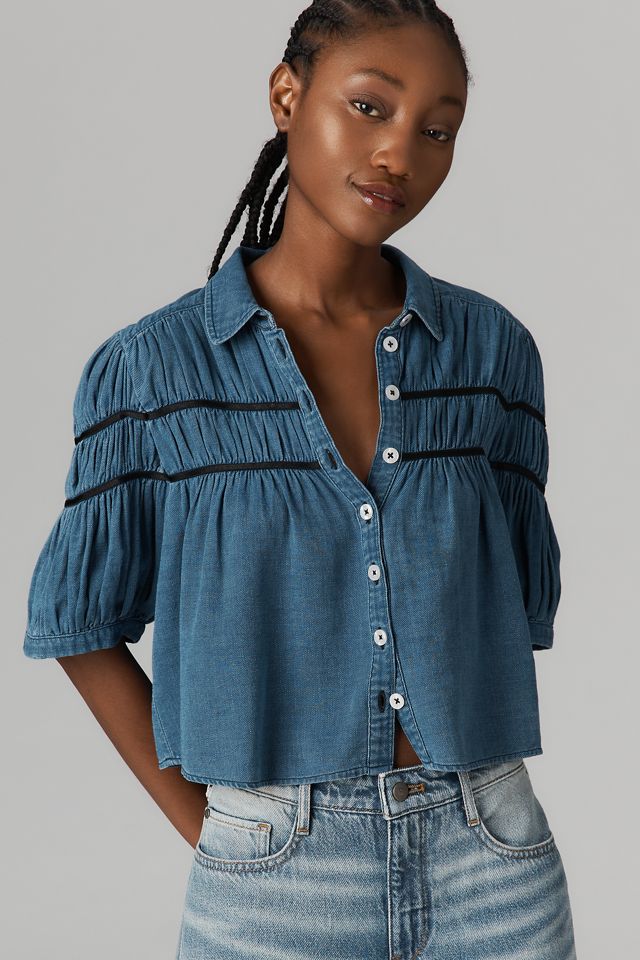 トップス Y's DEFORMATION CHECK ETTE BLOUSE 1 The Leandra Shirred Yoke Blouse by Maeve: Denim Edition