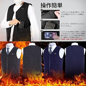 - 健康用品 > 冷え対策・保温グッズ > 裏起毛で暖かい❤️電熱ベスト ブラック 3XL Amazon | [PandaRio] 電熱ベスト メンズ 大きいサイズ S-4XL 12箇所