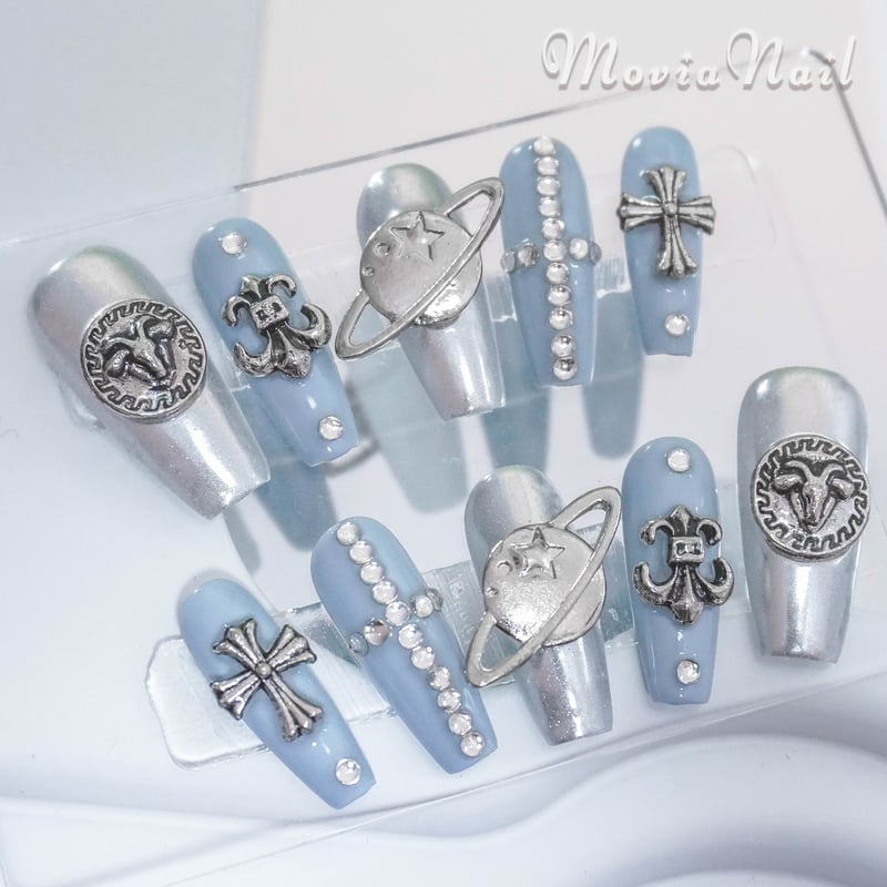 | メーカー | 【No.010】ネイルチップ♡地雷♡サブカル♡派手♡透明 水色ネイル |