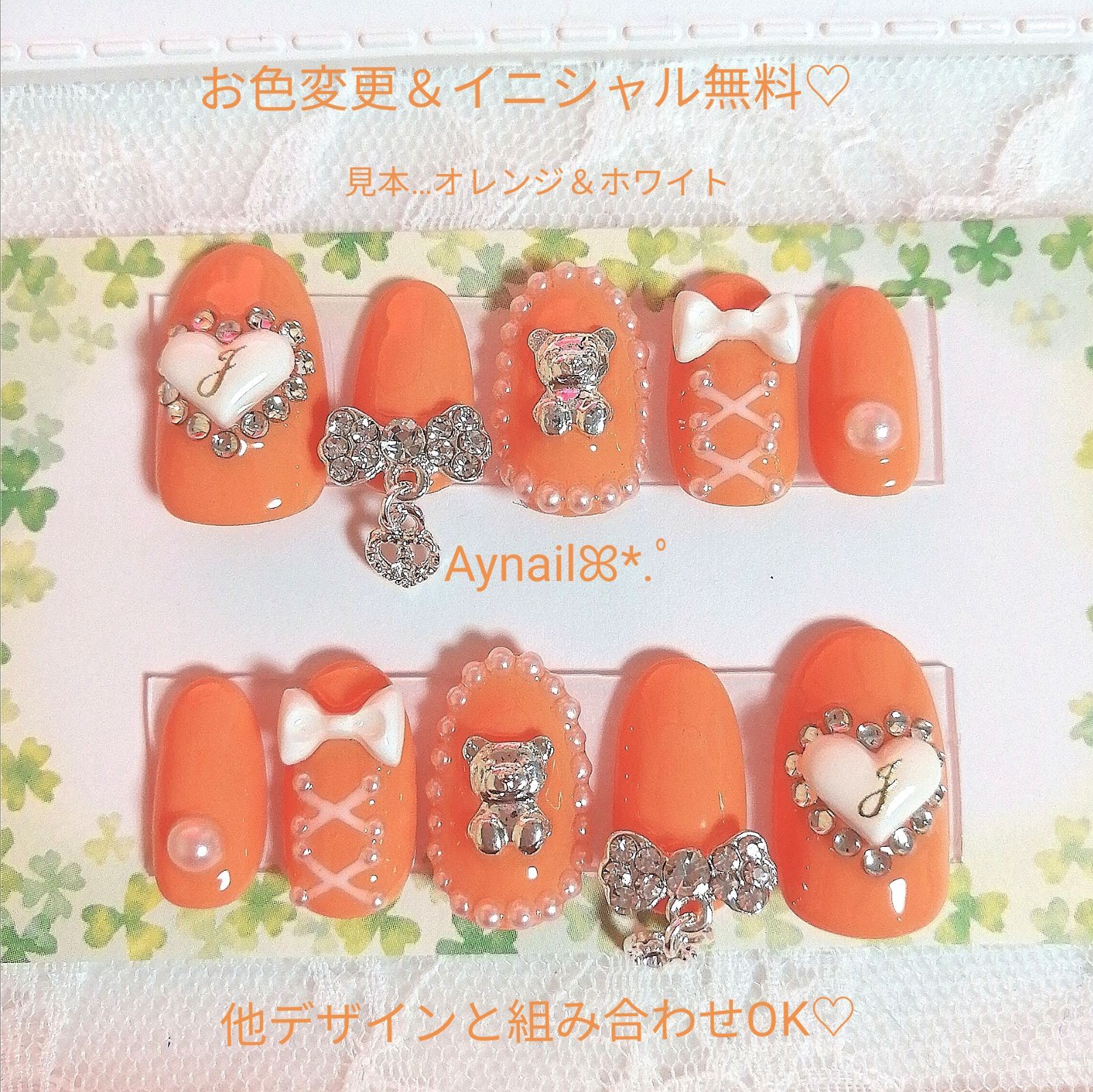 | 商品の特徴 | ネイルチップ 量産型 オレンジ 水色 なまえ コンサート 推しネイル。ネイルチップ 量産型 オレンジ 水色 なまえ コンサート 推しネイル。ネイルチップ❤︎シアーオレンジ 量産型地雷韓国ワンホンイニシャル。--⌇ 掲載デザイン料金 ⌇--¥ 3150 《管理番号 #113》他 デザイン一覧▼#CROWnailデザイン ¦ オーダーの方 ¦こちらの内容をコメント欄に記載ください▼︎︎︎︎︎︎︎︎︎︎︎︎・チップの種類 /両手サイズ︎︎︎︎︎︎・作成/配送オプション 有無︎︎︎︎・希望デザインの内容︎︎︎︎-- デザイン変更ある方 --文章のみで齟齬あった場合の作り直し出来ませんのでコラージュ画像の出品お願いします。欠品・入荷時期等の最新情報はパーツチャート更新致しますので、お手数お掛けして申し訳ございませんが確認お願い申し上げます。お気に入りが見つかりますようにꪔ̤̮\"___________。ネイルチップ 量産型 オレンジ 水色 なまえ コンサート 推しネイル。⚠️他店持ち込みデザインは不可 ______________________________ ¦当店の料金説明¦サイズオーダー ⋯ ¥3150 ( ※有料パーツ/デザインは別途)◾︎当店で掲載しているデザインから自由に組み合わせ◾︎カラー変更/パーツ追加 可能◾︎グミシール1回付▶︎有料パーツ/デザインはコメント欄に一覧掲載-- パーツ/カラーチャート --#CROWnailカラーチャート#CROWnailパーツチャート掲載のパーツであっても入荷不定期のパーツございます。ネイルチップ♡ブルー 青 ホワイト 量産型地雷韓国ワンホンイニシャルキラキラ。ネイルチップ♡ワインレッド 赤 量産型地雷韓国ワンホンイニシャルキラキラ。______________________________ --⌇ 作成 / 配送オプション ⌇--・お急ぎ作成A ( 翌日発送) ¥1000・お急ぎ作成B ( 3日で発送) ¥400・お急ぎ作成C (5日で発送) ¥200▶︎お急ぎ作成複数購入の方 追加¥300・メルカリ便 (追跡有/保証付/土日配送 )¥150・速達配送 ¥320 ・追加グミシール 1枚 ¥100▸ 測定用チップ販売各種¥350 (デザインオーダー際 50円引)___________‹‹ 自己紹介 ››元ネイリストのCROWです*誰かの 好きっ♡ に刺さればいいなっ そんな思いで日々作成しています。ネイルチップ♡グリーン 緑 ホワイト 量産型地雷韓国ワンホンイニシャル | ||