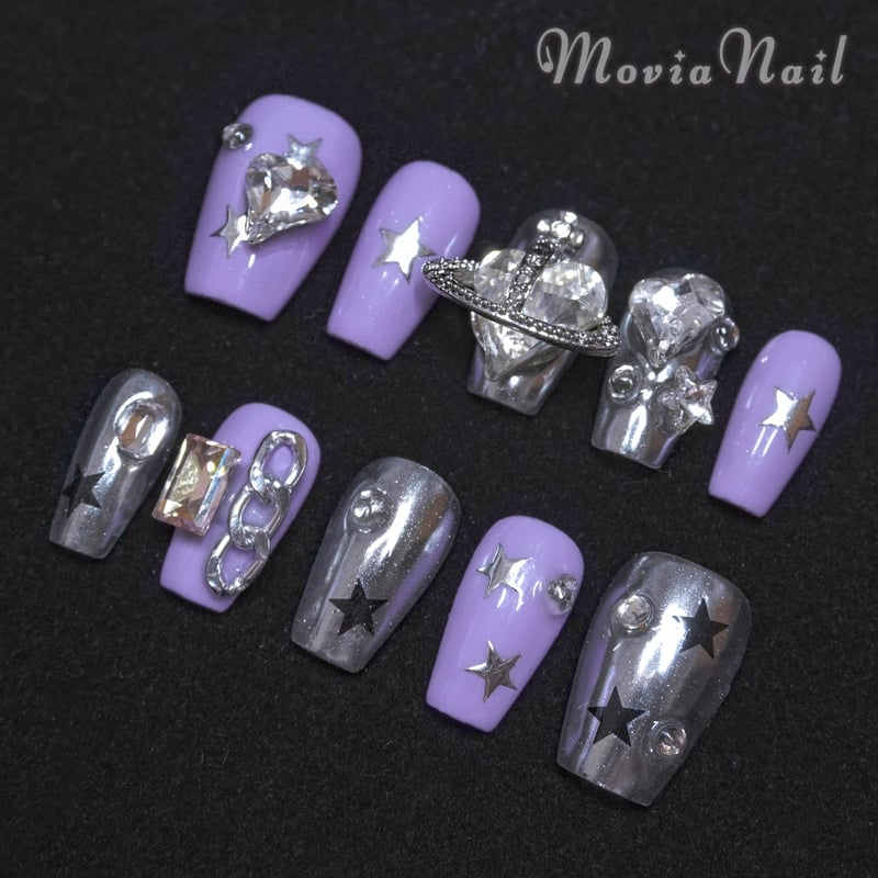 - ネイルケア > ネイルチップ・付け爪 > ネイルチップ ニュアンス 紫 派手 Y2k ギラギラ オーダーネイル ギャル ネイルチップ ニュアンス 紫 派手 Y2k ギラギラ オーダーネイル ギャル