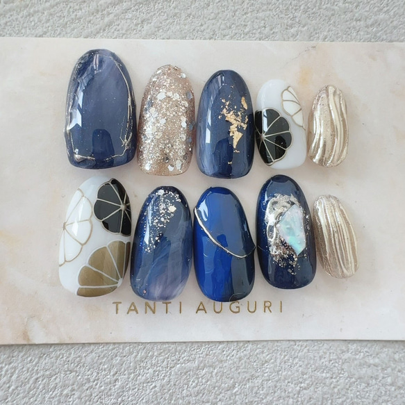 - ネイルケア > ネイルチップ・付け爪 > ネイルチップ ニュアンス卒業式成人式 前撮り 振袖 袴 着物 和柄 ネイビー 振り袖 紺 ネイルチップ 成人式 ネイビー 和風 和柄 前撮り 和装 和服