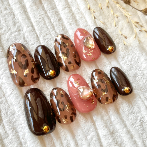 - ネイルケア > ネイルチップ・付け爪 > ネイルチップ 3個セット つけ爪 ショート ハート まだら レオパード ネイルチップ レオパードネイル #30 ネイルチップ(つけ爪) hana nail