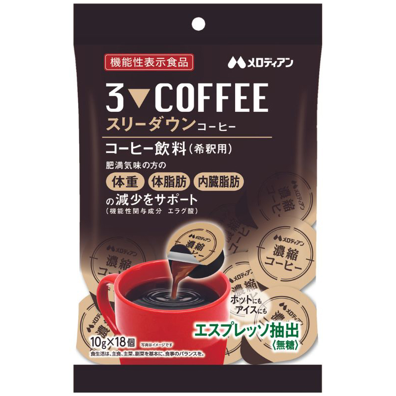 | 商品の特徴 | メロディアン スリーダウンティー 11g×18個 11袋 ポーションタイプ。メロディアン スリーダウンティー 11g×18個×3袋セット ポーション。18個入り】スリーダウンティー1袋(機能性表示食品) | メロディアン。楽天市場】【お買い物マラソン期間はP5倍!】【公式】メロディアン。メロディアン スリーダウンティー 11g×18個 11袋 ポーションタイプ賞味期限 2026.01.09 が7袋 2026.06.03 が4袋機能性関与成分⇒エラグ酸メロディアンスリーダウンコーヒーの姉妹品です体重•体脂肪•内臓脂肪の減少をサポートします♪高めのBMI値の改善に!!1日あたり3個を目安に1個につき130~150mlの水などによく混ぜてお召し上がりくださいスッキリとした甘さです♡ホットにもアイスにも♪【1日摂取目安量3個あたり67kcalです】☆ポーション開封前によく振ってご使用ください☆外袋開封後は袋の口を閉じて保存し、お早めに ご使用くださいリサイクルの箱に入れて宅急便で発送いたします | ||