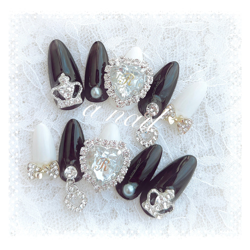 - ネイルケア > ネイルチップ・付け爪 > ネイルチップ♡ブラック 黒 ホワイト 白 量産型地雷韓国ワンホンイニシャル ネイルチップ❤︎ブラック ホワイト 量産型地雷韓国ワンホン