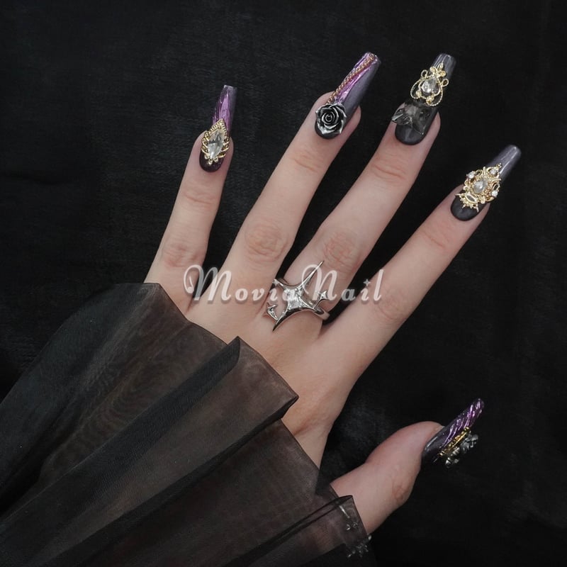 - ネイルケア > ネイルチップ・付け爪 > ネイルチップ♡パープル 紫 量産型地雷韓国ワンホンイニシャルキラキラガーリー ネイルチップ❤︎パープル 紫 量産型地雷韓国ワンホンイニシャル