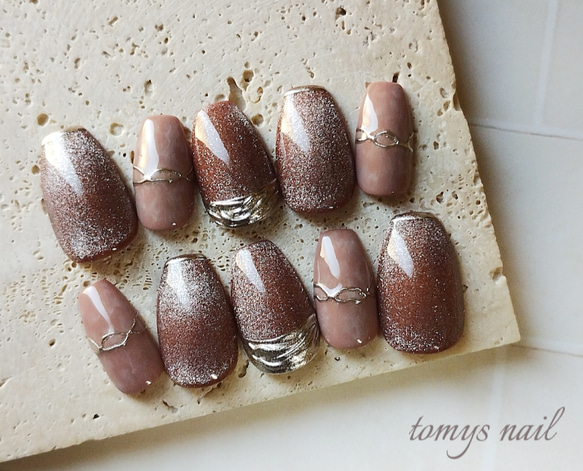 - ネイルケア > ネイルチップ・付け爪 > マグネットネイル マグネット フレンチ ミラー ネイルチップ ハンドメイド No.37/ネイルチップ ブラウンマグネットネイル ミラーフレンチ ネイル