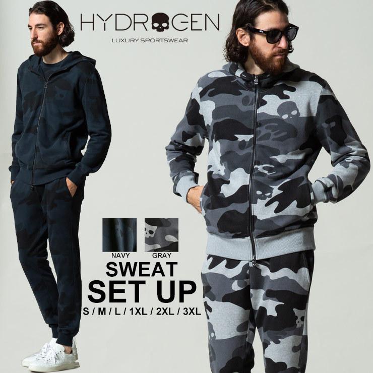 - トレーニング・エクササイズ > エクササイズグッズ > HYDROGEN スカルプリント ウェア上下セット HYDROGEN(ハイドロゲン) メンズ 迷彩 スカル 総柄 パーカー ロング