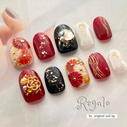 - ネイルケア > ネイルチップ・付け爪 > No.7 成人式ネイル ネイルチップ 和柄 卒業式 ウェディング ブライダル no.⑦⑦ 和柄 成人式 卒業式 お花 和装ネイル カラー変更ok 赤 白 黒
