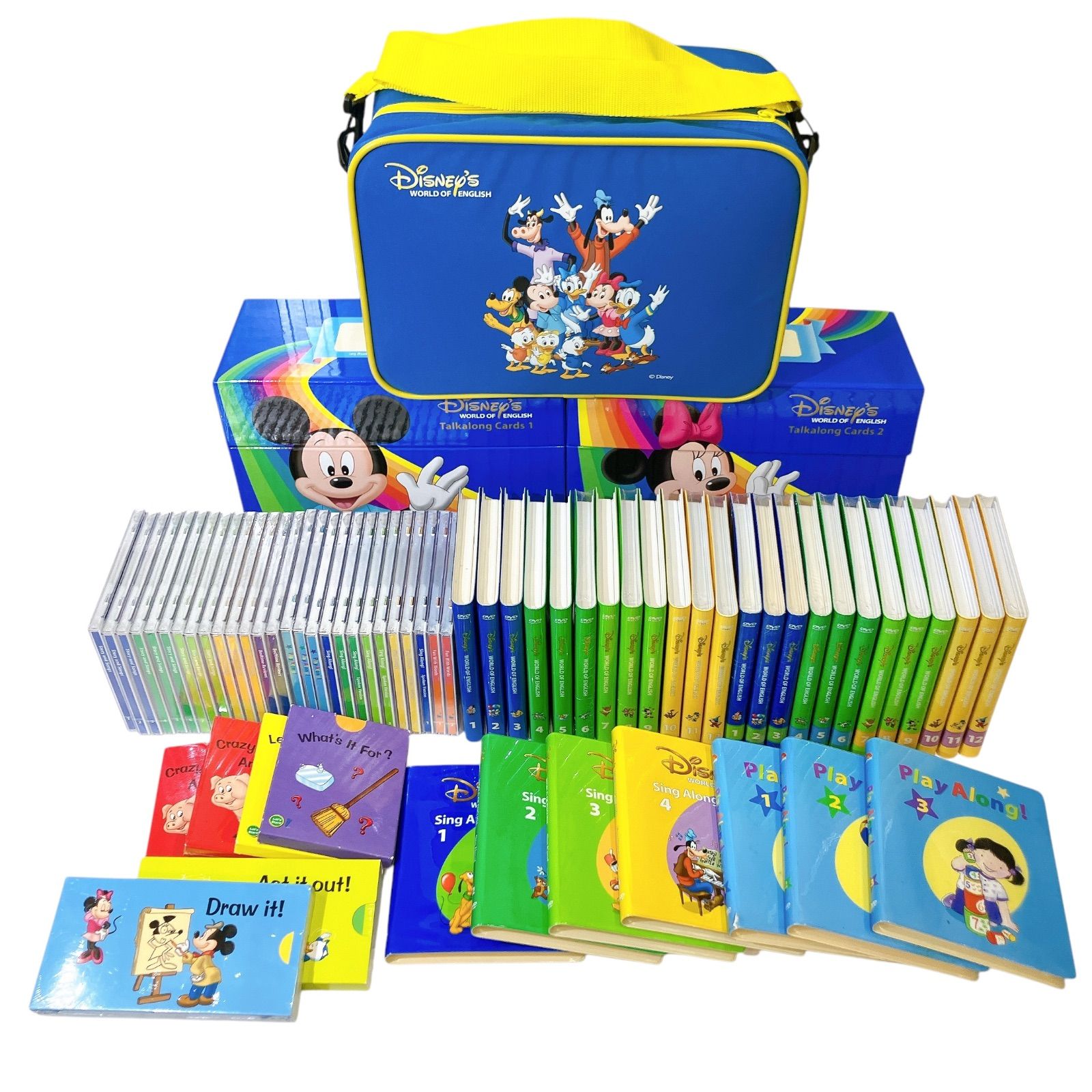 | 商品の特徴 | ディズニーワールドオブイングリッシュ ディズニー英語システム DVD。ディズニー 英語システム Sing Along! シングアロング CD 8枚セット。ディズニー英語システム DWE教材の中古販売。Disney's English ディズニー英語システムDVD、CD未使用品あり、足りない部分もあると思いますが、中古品としてご理解いただける方よろしくお願いします。- セット内容: ディズニー英語システムの教材本、CD、DVDセット- 対象年齢: 子供向け- シリーズ名: World of English- 特長: 教育的内容を含む- 付属品: ミッキーのペン2本- 言語: 英語。美品】DWE ディズニー英語システム シングアロング CD 絵本 ソング | ||