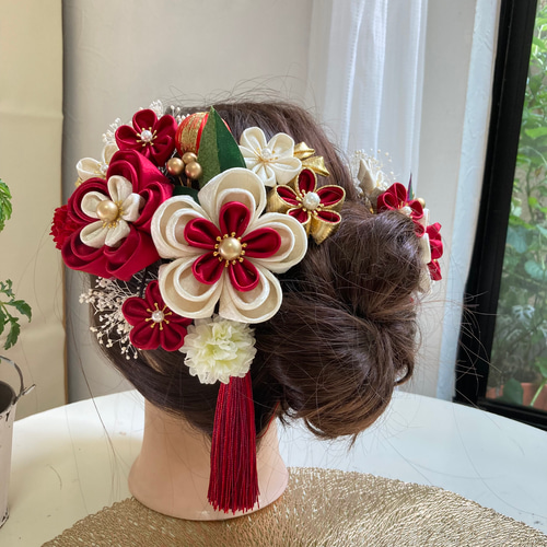 | メーカー名 | df464c15b | ブランド名 | つまみ細工 髪飾り 濃いエンジ アイボリー 長春色 つまみ細工 |