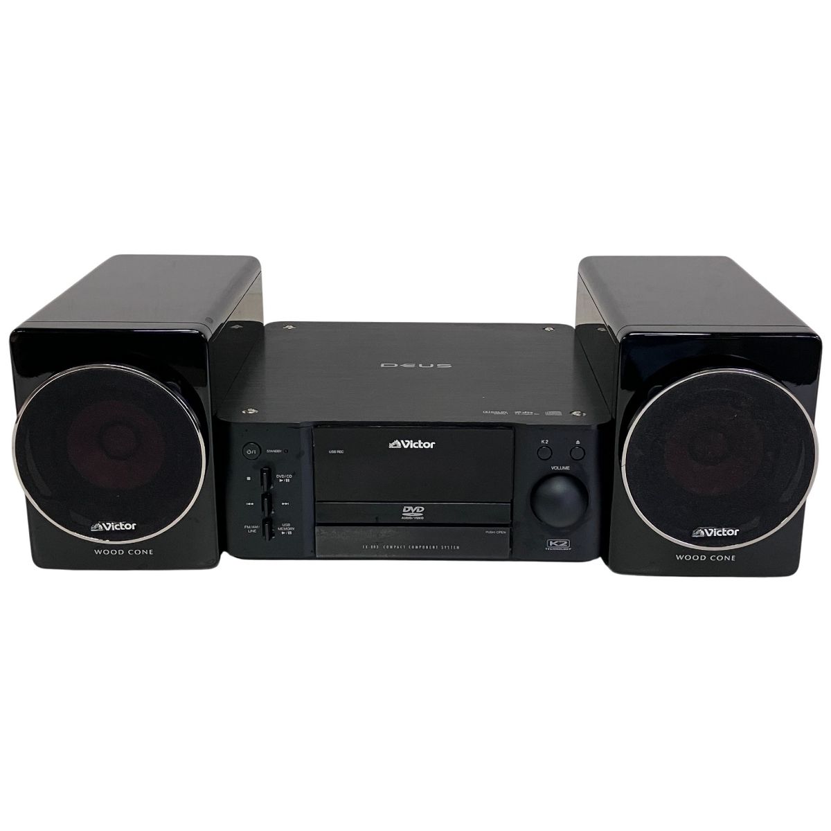 | 商品の特徴 | Victor EX-BR3 ミニコンポ DVD再生機能付き コンパクトコンポーネント。Victor EX-BR3 ミニコンポ DVD再生機能付き コンパクトコンポーネント。Victor EX-BR3 ミニコンポ DVD再生機能付き コンパクトコンポーネント。DVD再生機能付きのVictor製ミニコンポ、WOOD CONEスピーカー搭載。。Victor EX-BR3 ミニコンポ DVD再生機能付き コンパクトコンポーネント。- ブランド: Victor- モデル名: EX-BR3- タイプ: ミニコンポ- 付属品: 取扱説明書、リモコン付き※スピーカースタンド付です。BOSE WAVE MUSIC SYSTEM III(チタンシルバー)ワイドFM | ||