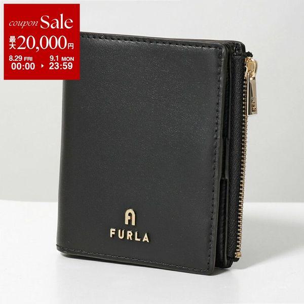 【美品】FURLA フルラ 二つ折り財布 現行ロゴ 黒 レザー カメリア FURLA(フルラ) 二つ折り財布 FURLA CAMELIA S COMPACT BIFOLD SLIM