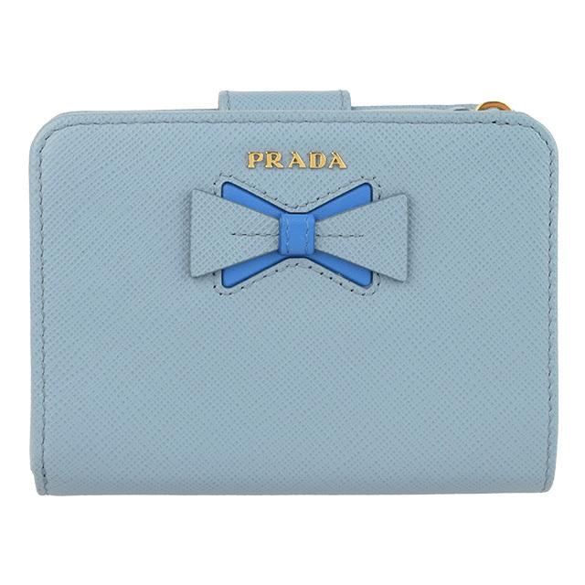 - レディース > 小物 > 現行【未使用】PRADA 折り財布 1ML018 サフィアーノ 青 RFID搭載 PRADA(プラダ) 財布 折財布 二つ折り リボン アウトレット 1ml018