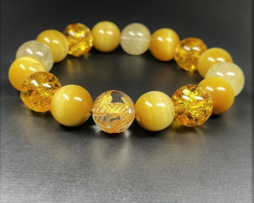 | 商品の特徴 | 6965192ddc45e349d6d77feefcc44f。大きな夢の実現を叶えよう!皇帝龍 三種タイガーアイ タイチンルチル。相性抜群の組み合わせ】金彫皇帝龍 本水晶 ゴールデンタイガーアイ。#サボテン小僧 の出品ページはこちらから◇大きな夢の実現、大盛況、大成功を目指すなら、このブレスレットと共に!【詳細】・金彫皇帝龍タイガーアイ(五本爪龍) 12mm・レッドタイガーアイ 12mm・タイチンルチル 10mm・タイガーアイ 10mm・ブルータイガーアイ 10mm☆皇帝龍とは古代では皇帝しか扱うことが出来なかった5本の爪を持つ皇帝龍。最高、最大、最強の龍です。偉大なる神、皇帝龍は大吉開運、大きな夢の実現、大盛況、大成功をもたらすと云われています。☆ルチルクォーツとはルチルの中でも、太い針を持ったルチルクォーツを「タイチンルチルクォーツ」と呼び、金財に関する情報をキャッチし成功へと導いてくれる意味合いを持っています。☆タイガーアイとはシャトヤンシー効果という光の筋が魅力な天然石です。石言葉で、金運・仕事運・願望成就・行動力・サクセス・独立・好奇心・洞察力・知識などがあります。☆レッドタイガーアイとはタイガーアイを酸化させることで色をブラウン、レッドに変化させたものです。情熱と冷静さで直感力を磨く石。金運、仕事運、厄除けのお守りに。☆ブルータイガーアイとは別名:ホークスアイ。持ち主に冷静な判断力を与えてくれます。適切な判断が必要な場面で身につけておくと良いでしょう。また前向きな行動力を促してくれるので、新しい事業を始める時などにもおすすめです。〇ブレスレットの内周サイズをお客様のお好みでオーダー頂けます。・写真の玉数での内周サイズは約17cmになります。12cm・13cm・14cm・15cm・16cm・17cm・18cmまでは、購入価格で対応いたします。※19cm~のサイズアップ料金は1cm毎に+300円です。ご希望のお客様は購入前にコメントお願いいたします。□製作は、オペロンゴムを使用し4重にしています。伸縮性があり掌を通しての装着になります。※使用頻度により、ゴムがどんどん馴染んでいきますが、馴染む前(硬さがある)に引っ張ったり、強引に伸ばしすぎると、ゴムが切れてしまいますので、注意してください。コツは、手を滑らせていくような感じで、脱着してください。。閃きを与える数珠】12ミリ 金彫皇帝龍本水晶 ゴールデンタイガーアイ。正規品 ZOCALO ダブル バードドージェ ブレスレットシルバー21cm。VIVIFY IDシルバー チェーンブレスレット。DEAL DESIGN GL フィガロブレスレット Mサイズ。アクセサリー Le Gramme bracelet le beads le 25g。cootie productions ブレスレット。【完売品】LIBALF 寺島遼選手監修 ブレスレット。アクセサリー INTERIM TAXCO SILVER BRACELET A-TYPE。(箱付き.布)クロムハーツ、ブレスレットクロス 925刻印有り。{希少}一点物 CELINE セリーヌブレスレット。DIESEL Dx1514 シルバーブレスレット。最終 Audemars Pigueeオーデマピゲ 非売品 ブレスレット。70.2g Soul Fetish ソウルフェティシュ シルバー ブレスレット。【HATTON LABS】MULTI TENNIS BRACELET(訳あり)。FIFTH GENERAL STORE ブレスレット フィフスジェネラルストア。【激レア】アクアフォルティス シルバーブレスレット。DIESEL Dx1633040 ステンレス スチール チェーン ブレスレット。新品未使用オメガ ブレスレット サマーブルー ノベルティ。GUCCIのフィガロ チェーンブレスレット。Louis Vuitton モノグラム チェーン ブレスレット シルバー。BRU NA BOINNE B.W.B 有刺鉄線。Dieselステンレススチール チェーンブレスレット シルバー/ブラック | ||