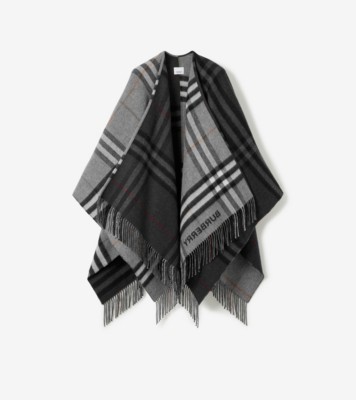 - レディース > ジャケット・アウター > バーバリーロゴグラフィック ウールカシミア ジャカード フーデッドケープ コントラスト チェック ウールカシミア ジャカードケープ (グレー