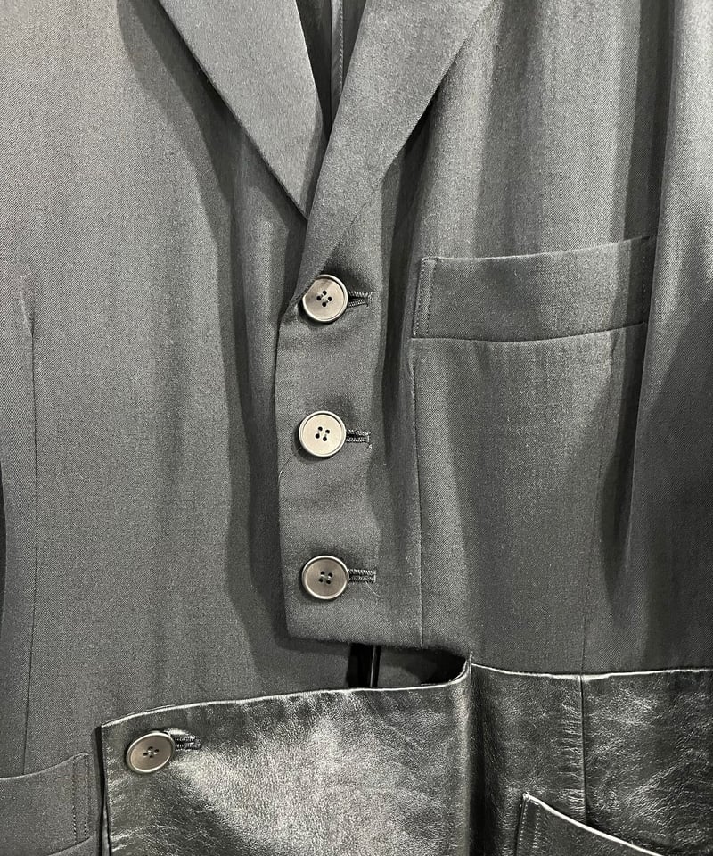 ヨウジヤマモト 02AW レザー切り替え テーラードジャケット 鹿革 1980's yohji yamamoto femme vintage レザー切り替えジャケッ