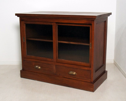 - 棚・ラック・シェルフ > 木製ラック・ウッドラック > アンティーク ヴィンテージ レトロな小さめキャビネット モールガラス アンティーク調 モールガラスキャビネット 昭和レトロ 水屋 すりガラス