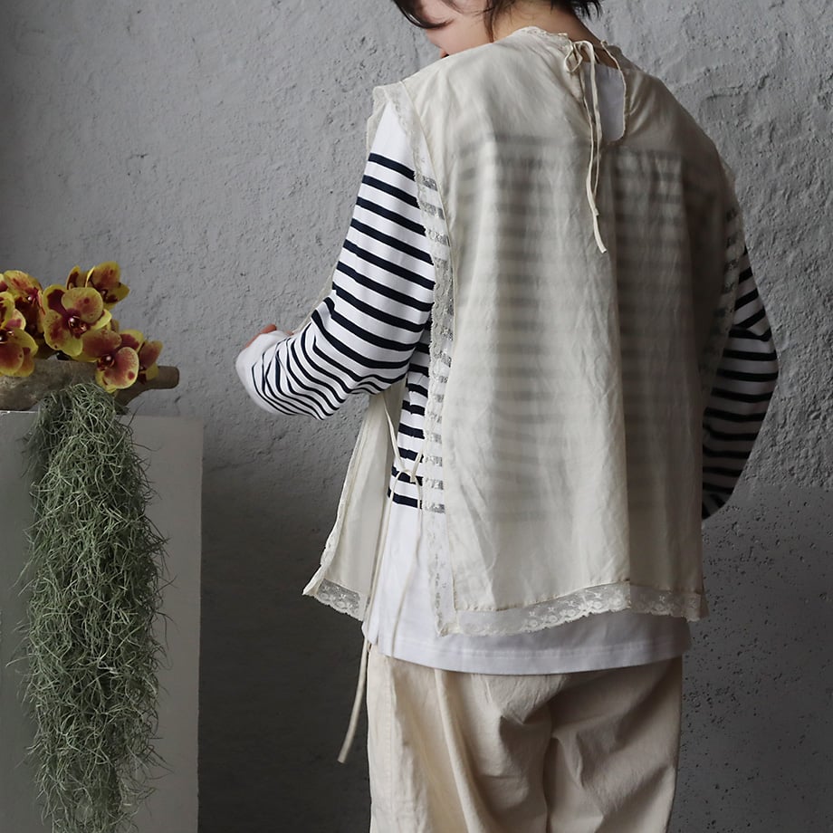 | 商品の特徴 | fit=scale-down,w=1200。TOWAVASE Leavers tablier (ivory) | nii-B | WEBSHOP。TOWAVASE Leavers tablier (ivory) | nii-B | WEBSHOP。アイボリーのレイヤードデザインで、スタイリッシュな印象を与えるタブリエ。- ブランド: TOWAVASE- モデル名: Leavers tablier- 色: アイボリー- 価格: ¥41,800- デザイン: レイヤードスタイルご覧いただきありがとうございます。TOWAVASE Leavers tablier (ivory)トワヴァーズ リバー タブリエ(アイボリー)Le voyage de Sarah架空の女性サラの旅模様。少女から大人にかけてのparis⇔provence長い旅路をたどるJardin du luxembourg(リュクサンブール公園)でバトーで遊んだ日々からrestaurant Le Jardin du Quai でランチを・・・大人になるまでのたくさんの旅模様をデザインに込めて・・・1813年にジョン・リバーが発明したリバー織機。アンティークでみられるリバーレースやクルーニーレースはすべてこの織機によるもの。当時とほとんど変わらない機械で作られたレースはアンティークと同様の仕上がりです。コットンシルクの滑らかで柔らかなドレス。ヨーロッパのアンティークの前掛けのようなデザインで、サイドを紐で結ぶようになっています。3枚仕立ての前掛けがユニーク。美しい透け感、サイドの見せ方で中に合わせるものを考えるのが楽しくなる1枚です。サイズ:着丈:約68cm(レース部含む)身幅:約46cm肩幅:約45cm裾幅:約56cm素材:コットン70% シルク30%made in japanかわいいのですが、着こなす事ができませんでした。試着のみですが、タグがございません。ご了承下さい。ご理解いただける方にお譲りできればと思います。宜しくお願い致します。。TOWAVASE Leavers tablier (ivory) | nii-B | WEBSHOP。タグ付き新品未使用【TOMORROW LAND】ファーベスト。マリモ。未使用タグ付きspick&Spanニットベスト。dceuxieme classe ベージュ ニットベスト 背後スリット。ELLIE リバーシブルロングベスト。【美品】anuans ショートファーベスト。TOMORROWLAND クリームファーベスト。mizuiroind ミズイロインド フロントフライコクーンジレ フリー 日本製。Todayful チャンキーハンドニットベスト。ANAYI アナイ モールコンビクルーネックジレ ベスト。MAISON SPECIAL ローズリボンモチーフビスチェ。ま*る様 Mystrada デコラチュールブラウス(黒)。トップス AMERI CRUSHED LEATHER SLEEVELESS TOP。HYKE ハイク クロップド ボアベスト | ||