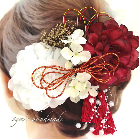 - レディース > ヘアアクセサリー > 紅白 和装髪飾り 成人式髪飾り 振袖髪飾り 結婚式髪飾り 着物髪飾り 色打掛髪飾 カラー変更OK】レッド&ホワイト 紅白 和装 振袖 髪飾り 成人式 結婚式