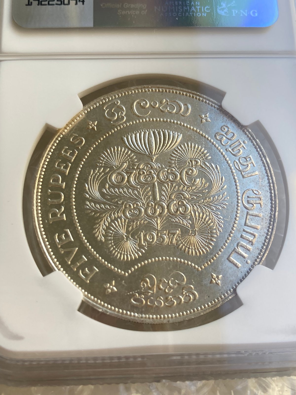 - 美術品・アンティーク・コレクション > コレクション > 銀貨 1957年 イギリス領 セイロン島 スリランカ 5ルピー イギリス領セイロン島 1957年 仏教2500周年 5ルピー銀貨 シルバー