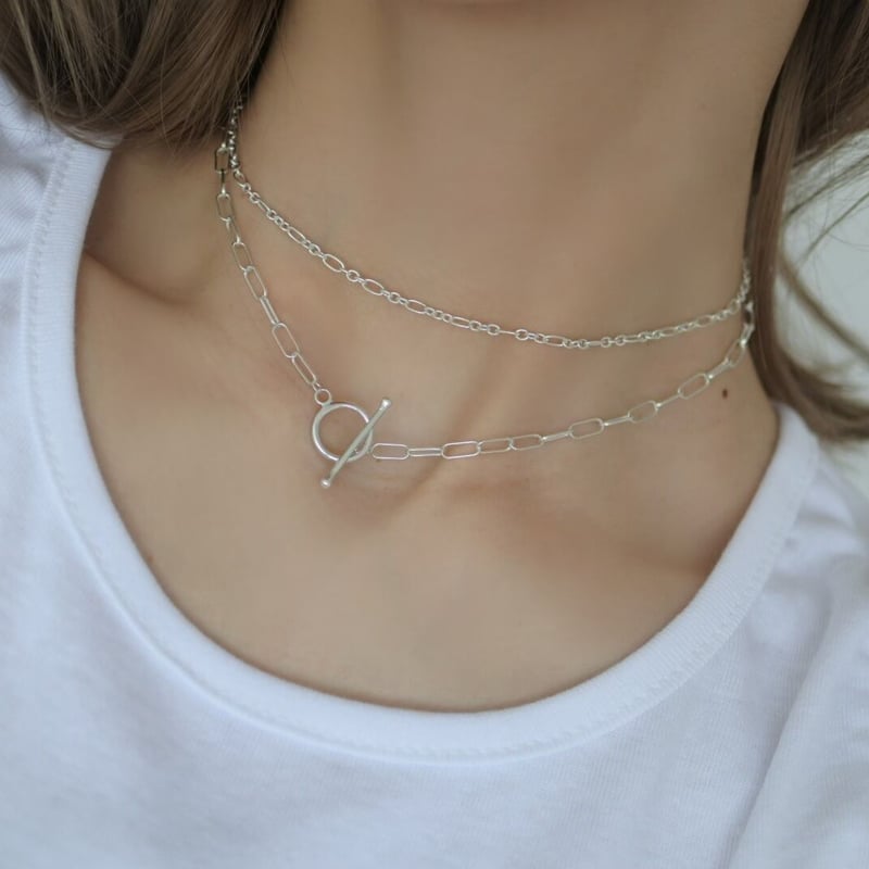 - レディース > アクセサリー > 【F】SILVER 925 K8刻印 レディース ネックレス チョーカー silver925チェーンマンテル2連チョーカーネックレス | LAROIS