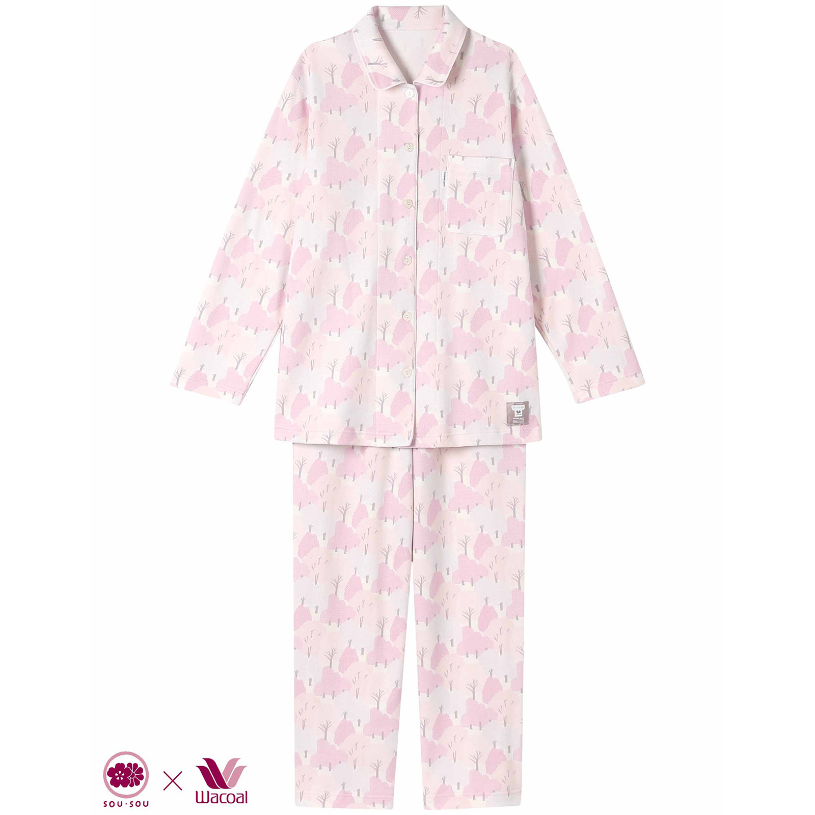 新品タグ付き ワコール SOU・SOU ワンピ ルームウェア パジャマ 黒 綿100%の冬のあったかレディースパジャマ|SOU・SOU柄 | Wacoal