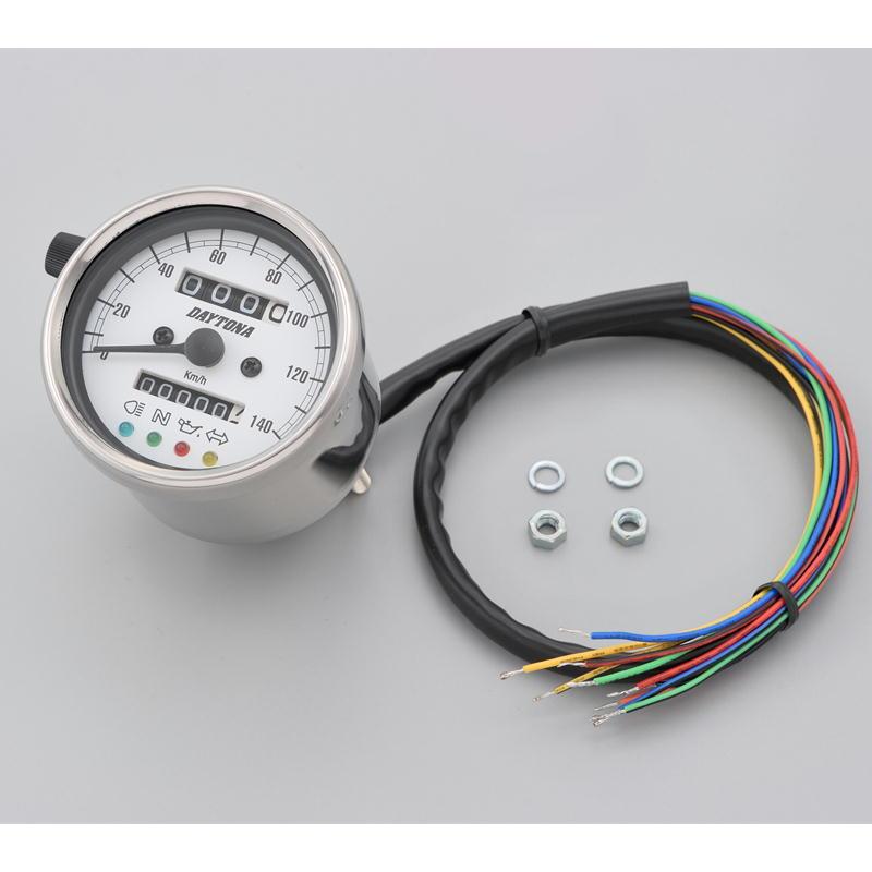| 商品の特徴 | DAYTONA(デイトナ) バイク メーター 機械式スピードメーター。VELONA 電気式スピードメーター Φ48 140km/h|株式会社デイトナ。Webike | DAYTONA デイトナ VELONA 電気式タコ&スピードメーター。デイトナ バイクメーターブラックボディ/ブラックパネル新品未使用開封品です。機械式スピードメーター(インジケーター付き)Φ60 ホワイトLED照明。参考価格:13,200円DAYTONA製のデジタルスピードメーター、最大140 km/hの速度計測が可能。デイトナ VELONA 電気式タコメーター φ48 9000rpm。- ブランド: DAYTONA- 寸法: 約300mm(インジケーター付き約550mm)- 付属品: ワッシャー3個、配線- 速度計範囲: 0-140 km/hバイクパーツカスタムパーツ スピードメータータコメーター用品の種類...スピードメーター | ||