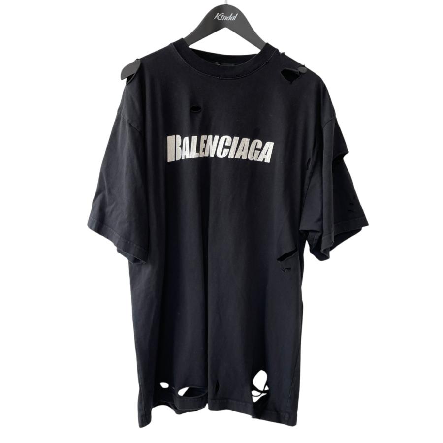 - メンズ > トップス > バレンシアガ BALENCIAGA ロゴ刺繍 ダメージ加工 TシャツM相当 バレンシアガ トップ BALENCIAGA ロゴ刺繍 ダメージ加工 TシャツM相当