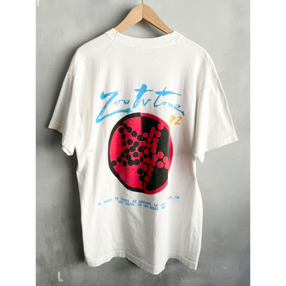 | 商品の特徴 | fit=scale-down,w=1200。90's U2 ZOO TV Tour T-Shirt 90年代 ユーツー ツアー Tシャツ。90's U2「ZOO TV TOUR」ツアーTシャツ – FUJI STORE。fit=scale-down,w=1200。\"U2\" The ZOO TV Tour Vintage Band T-shirt 90’s コピーライト1992年 Hanesボディー袖裾シングルステッチ色...白素材...コットンサイズ...L肩幅...48cm身幅...51cm着丈...70cm製造国...アメリカ | ||