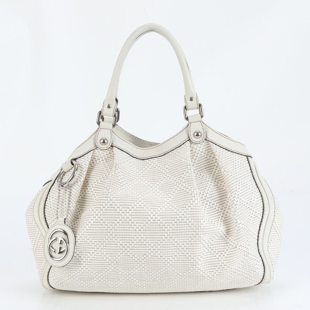 - レディース > バッグ > GUCCI グッチ ディアマンテ GG スーキー シマ ハンドバッグ ホワイト 極美品 グッチ ディアマンテ シマ スーキー 211944 レザー トート