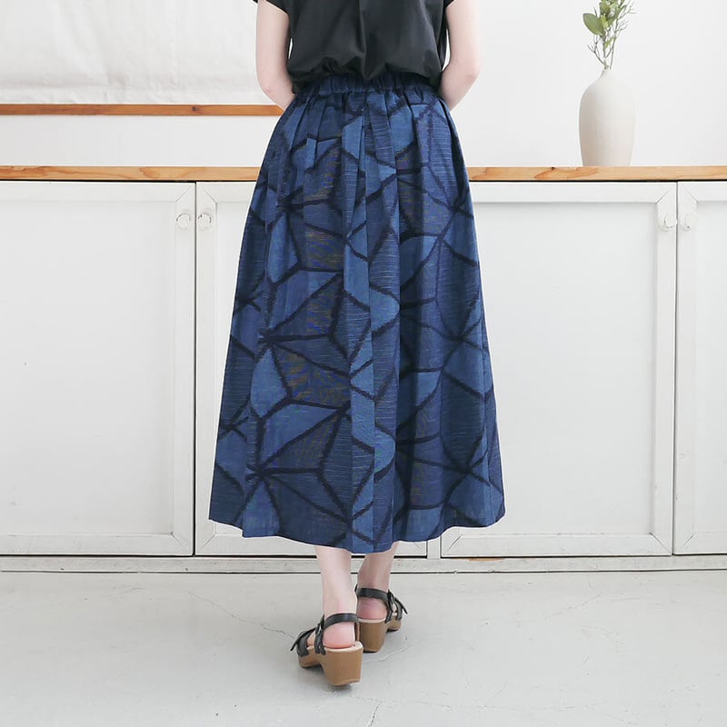 | 商品の特徴 | 久留米かすり|絣フレアスカート |石畳|GOUACHE FUKUOKA | GOUACHE F。久留米かすり|絣フレアスカート |石畳|GOUACHE FUKUOKA | GOUACHE F。ku6.jpg。久留米絣手織りウエスト 66cm〜100cmゴムです。久留米かすり|絣フレアスカート |弁慶格子|GOUACHE FUKUOKA。丈70cmポケットあり絣かすり宮田織物藍暦久留米絣 | ||