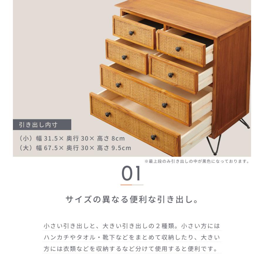 マニーローズ取手付き 木製チェスト7段 8引き出し ナチュラル仕上げ 東谷 チェスト 木製 ラタン 幅80 脚つき 一人暮らし 引き出し 6杯 奥行