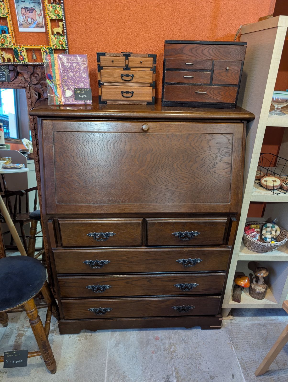 | 商品の特徴 | 送料込みビューロー 北海道民芸ヴィンテージ。◇北海道民芸家具 ライティングビューロー デスク 書斎 勉強机 樺材。送料込みビューロー 北海道民芸ヴィンテージ。【引き取りも可】東京都江東区まで引き取りに来られる場合は送料分値引き可※沖縄本島を含む離島は配送全域対象外です。総合リサイクルショップ RecycleGallery NEWS / 北海道民芸。約50年位前のヴィンテージ品です。ノリスケ/木製ガラスショーケース/ダークブラウン3段。経年による傷等々も味として理解していただける方のみご購入ください。木製装飾チェスト 3段 猫脚 イタリア。カバの木なのでとてつもなく重いです。銘木 唐木 書院欄間 5枚セット ガラス付き。1人ではおそらく移動できるものではないのでその辺りも考慮してご購入ください。イタリア製 アンティークライティングビューロー デスク チェスト。(引きずっての移動はできます)なお、出品期間は1、2週間程度買い手がない場合は処分を考えていますので検討中の方はお早めにどうぞ。japan vintage 水屋箪笥 茶箪笥 飾り棚 杢目 木製 無垢材 和家具。【サイズ】素人採寸幅: およそ76cm奥行き: およそ46cm(取手部分含む) 足元は42cmほど高さ:およそ99.5cm【状態】傷ありです。アンティーク カリモク 木製センターテーブル 引き出し付き。下段の引き出しは少しかたいです。【美品】チェスト 木製 整理タンス 和風 整理箪笥 無垢 引き出し 収納。やすりで削ったり、滑りを良くするものを使用した方がいいと思います。【美品】希少 ベントウッドチェア 2脚セット ポーランド製。元々、上段に棚がついていたのですが今も使用しているため棚は付属しません。花台 中国美術 古玩 唐木 平卓花台 中国 横幅約40cm 飾り台 煎茶道具。つい最近まで家で使用していた年季の入った家具です。Silkさん専用)アンティーク風 木製キャビネット ガラス扉付き 引き出し付き。写真以外にも傷等あると思います。李朝デザイン家具 小引き出し アンティーク 5段チェスト。ご了承のうえご購入を。昭和レトロ ちゃぶ台 テーブル 丸 折り畳み 大きめ 茶色。 | ||