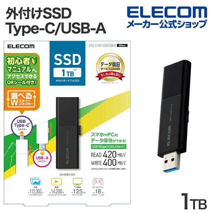 - PC周辺機器 > 外付けハードディスク・ドライブ > エレコム 外付けSSD 1TB ELECOM(エレコム) 外付けSSD 1TB USB Type-C USB-Aコネクター対応外