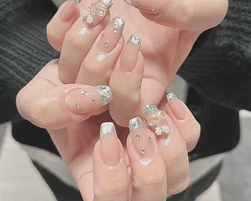 - ネイルケア > ネイルチップ・付け爪 > お急ぎ便A♡ ネイルチップ 量産型 韓国 シンプル ちゅるん ヲタク チェック No.107】ガラスフレンチちゅるん ワンホン ネイルチップ 春 ガーリー