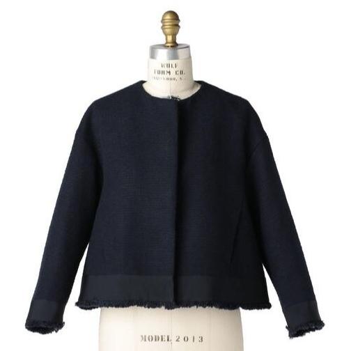 - レディース > ジャケット・アウター > Drawer ドゥロワー ツイード フリンジ ノーカラー ジャケット Drawer ドゥロワー コットン ツイード フリンジ ネイビー ジャケット