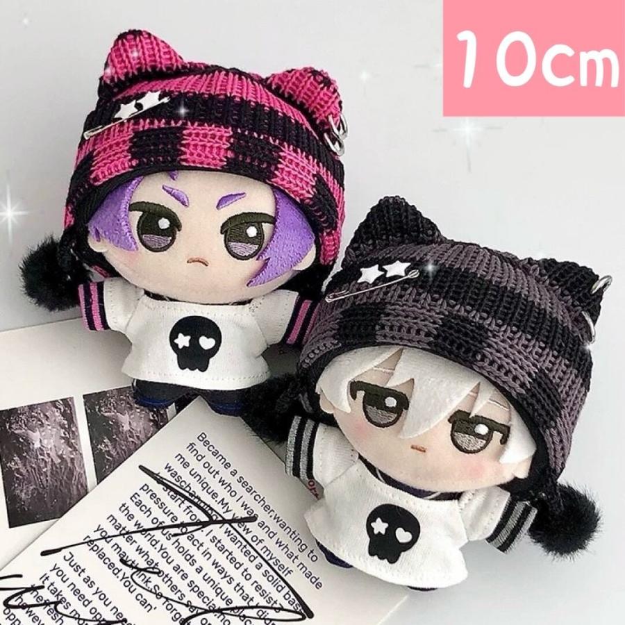 яоа:様ぬい服ふわふわ猫耳10cm 12cm いつぬい ちびぐるみ にじぱぺ ぬい服 10cm 11cm 12cm ボーダー柄 猫耳ニット帽 ドクロ ピンク 黒