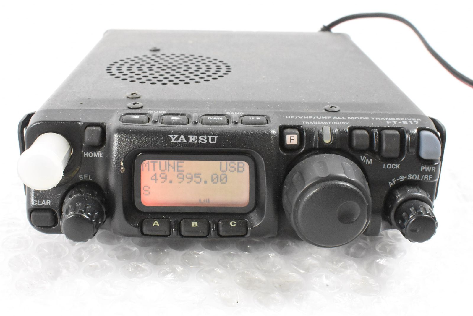| 商品の特徴 | YAESU FT-817ND オールモードトランシーバー 【公式通販】。YAESU FT-817ND オールモードトランシーバー 【公式通販】。YAESU FT-817ND オールモード トランシーバー。YAESU FT-817ND HF/ 50 144 430 オールモード トランシーバー2016年5月購入 最近はFMラジオ代わりにシャック内で使用していました。YAESU FT-817ND オールモード トランシーバー。出力は通過型SWR計とダミーロードで簡易測定V/UHFは4W程度、HF(7,18,28MHz帯を測定)4.5W程度でした。KENWOOD UBZ-LP20 特定小電力トランシーバー 充電器付属。大きな傷等はありませんが金属部分、ダイヤル部分に経年の曇りがあります。国際VHFトランシーバー ICOM IC-M37J。(塗装部分はきれいです)電源ケーブルは全てエーモンのカプラー(110型)で接続しています。ICOM IC-4120 トランシーバー。コネクターはヨドバシ.comで132円(送料込)程度で購入出来ます。☆IC-207 20W 145/433MHz ICOM アイコム☆。https://www.yodobashi.com/product/100000001002700801/付属品一式の他下記をつけています。YAESU FTM-6000S 144/430MHz デュアルバンドFMモービル。・FT-817マニアになる本・シガライターケーブル・自立金具(自作です)・前面BNCコネクターカバーまた、バッテリーパックは本体に取り付けたままですで購入時の物なので受信程度でしたら使用できますが送信には容量が無く使用出来ないと思います。Yaesu FT-736 バンドトランシーバー 144MHz 430MHz。 | ||