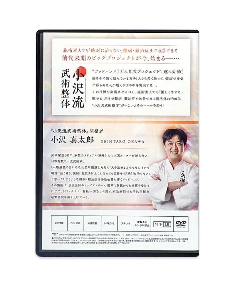 | メーカー | 小沢流武術整体 DVD4枚組+特典1枚ゴッドハンド小沢真太郎の施術を完全マスター |