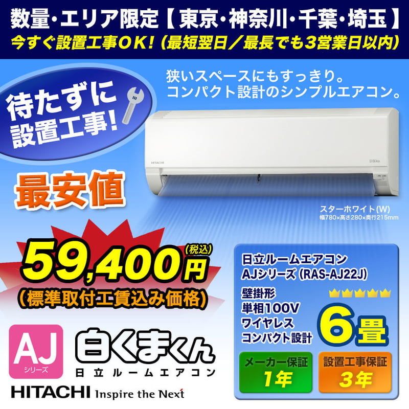 - 冷暖房・空調 > エアコン > 【大阪限定】【取付工事費込み】HITACHI RAS-F22RM-W【残り1台】 大阪限定】【取付工事費込み】HITACHI RAS-F22RM-W【残り1台】 大阪