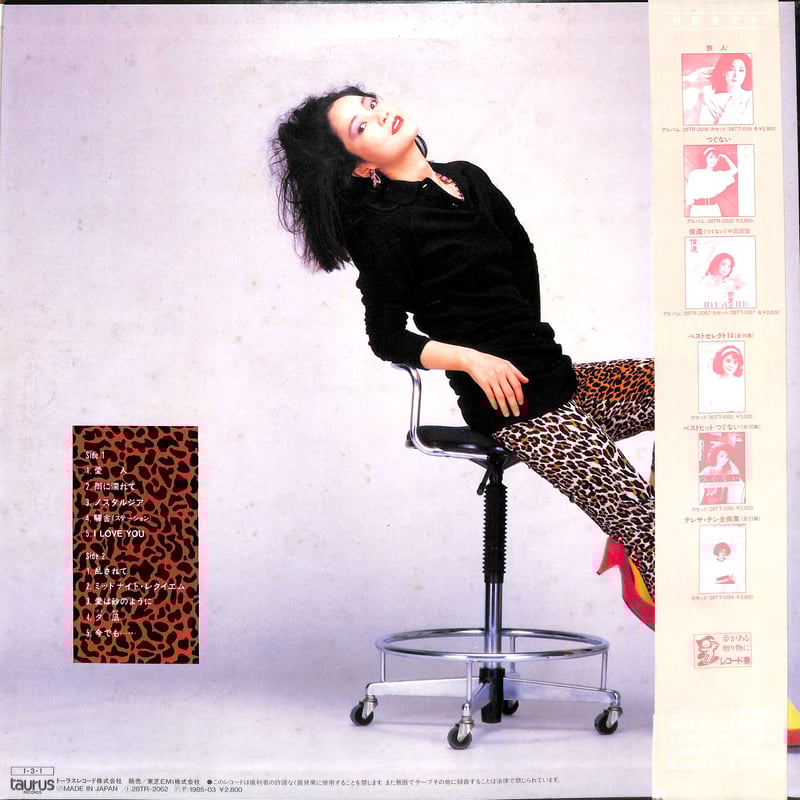 | 商品の特徴 | テレサ・テン / 愛人(LPレコード) | Books Channel Music Shop。Amazon.co.jp: 愛人[テレサ・テン][EP盤]: Music。テレサ・テン / 愛人(LPレコード) | Books Channel Music Shop。貴重な一品テレサ・テンのLPレコード、帯付きでコレクションに最適。テレサテン / 愛人 | SIXTEEN RECORDS EP。- タイトル: 愛人 テレサ・テン- アーティスト: テレサ・テン- レコードの種類: LPレコード- ジャケットの状態: 未開封- 特記事項: 帯付きご覧いただきありがとうございます。砂原良徳 Lovebeat EP 2001。 | ||