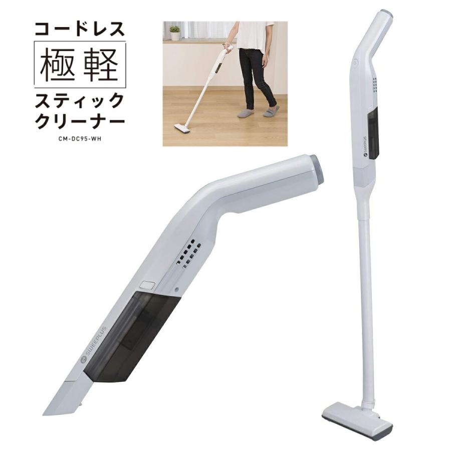 - 生活家電 > 掃除機・クリーナー > 掃除機 コードレス 軽量 2WAY 一人暮らし サイクロン 電気掃除機 CCP CCP CM-DC95-WH SWEEPLUS コードレス 充電式 スティック ハンディ